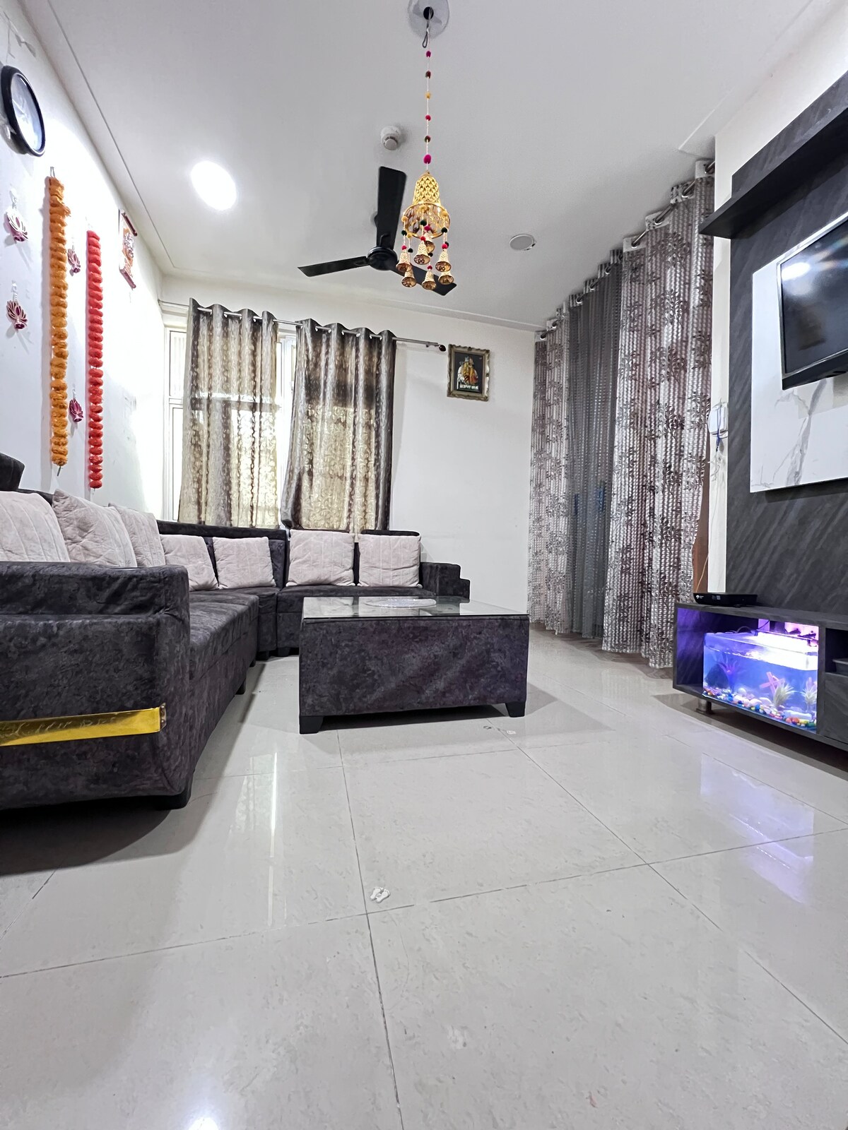 Our newly constructed 2 BHK apartment blends modern comfort with natural charm. The space features 2 serene bedroom with a queen-size beds, a spacious living room, a well equipped kitchen, 2 bathrooms: one attached to the master bedroom and another accessible from the living room and second bedroom and L- shaped balcony offering great view of the city. The property is located near a premium mall in Noida! This well-situated location offers you the convenience of shops, cafes, and entertainment.