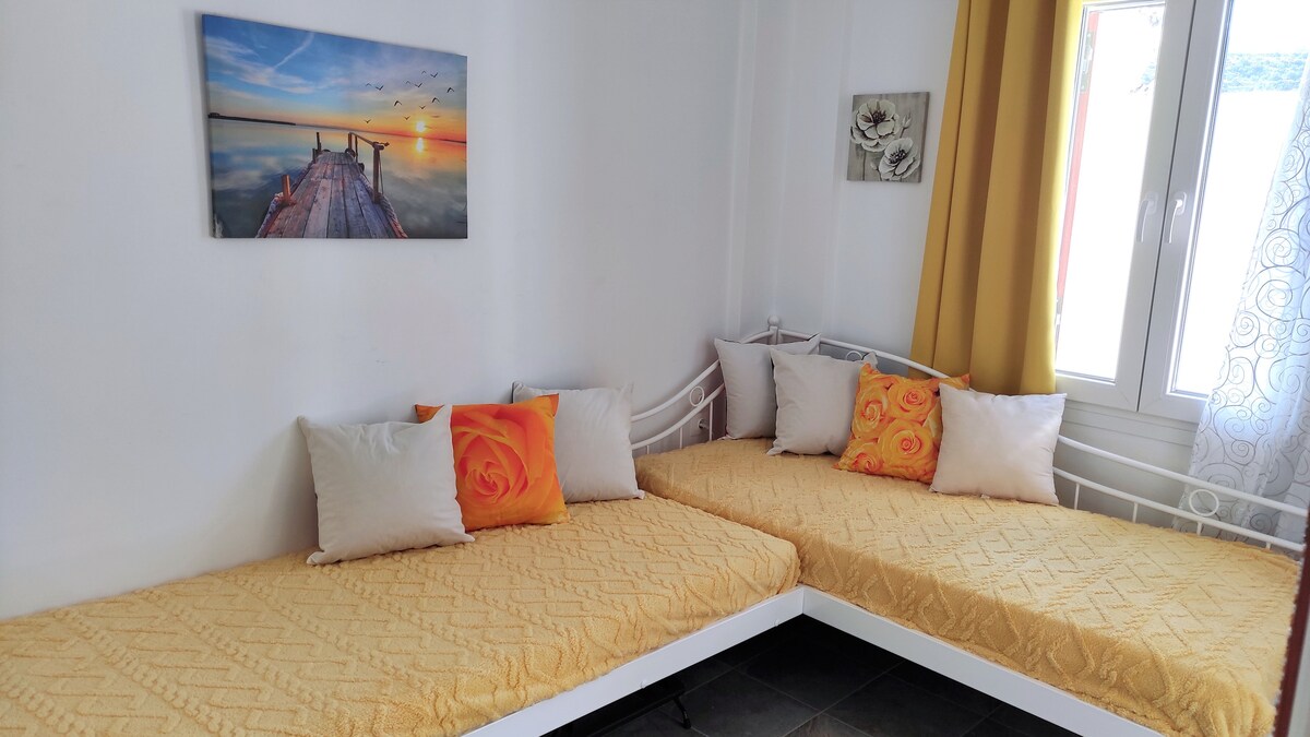 House in the quiet fishing village of Faros, over the beach of Glyfo. The house has one bedroom with a double and a single bed, with the possibility to add a folding single bed. In the living room, there is a fully equipped kitchen and two single built-in sofa beds, with the possibility of an additional folding single bed. In the bathroom, there is a washing machine. Apart from the spacious terrace, all rooms offer magnificent view of the beach.