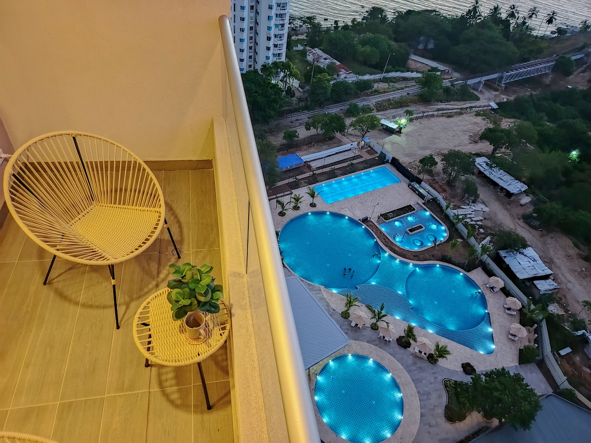 Experience the charm of Santa Marta, the pearl of America, from a resort abundant in nature and comfort. Wake up in a luxurious apartment by the ocean, and enjoy the privacy and serenity of our private beach. Located just 10 minutes from the airport, you will have everything you need to make your vacations unforgettable: • Private Beach • Beach Gym • Tennis, basketball, and beach volleyball courts • Two Pools with Ocean View • Restaurant • Bar • Grill • Minimarket