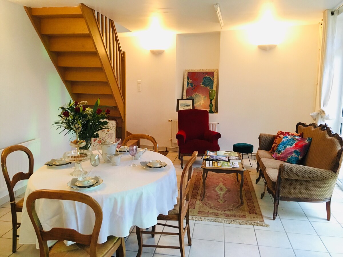 Independent and elegant 48 m² studio in a detached house, accommodating 2 people. It is equipped with a kitchenette, bedroom, office area, sitting area with TV and separate bathroom and toilet (baby cot and armchair on request). A relaxation area to discover ;) Bath towels and bed linen are included in the price. The accommodation also has a courtyard for parking and a private garden (garden table, ping pong table).
