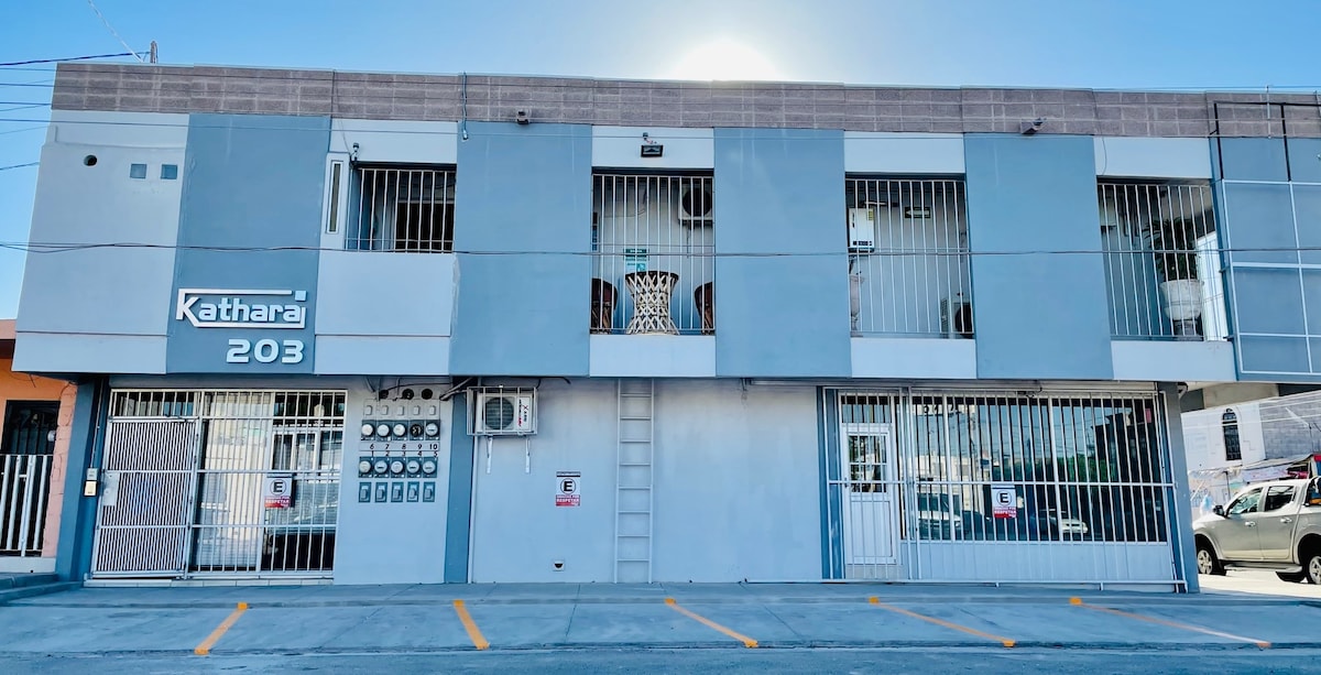 Bonito y cómodo departamento ideal para 2 personas. Equipado para una agradable estancia con excelente velocidad de Internet. Cuenta con estacionamiento con portón eléctrico (sólo auto cerrado), así como con alumbrado y cámaras de seguridad. Se encuentra ubicado en la zona más céntrica de la ciudad, a pocos minutos de IMSS, Hospital General, Plaza Tutuli y Plaza Goya. Al departamento se accede con cerradura inteligente por lo que se le enviarán los códigos de acceso el día de su llegada.