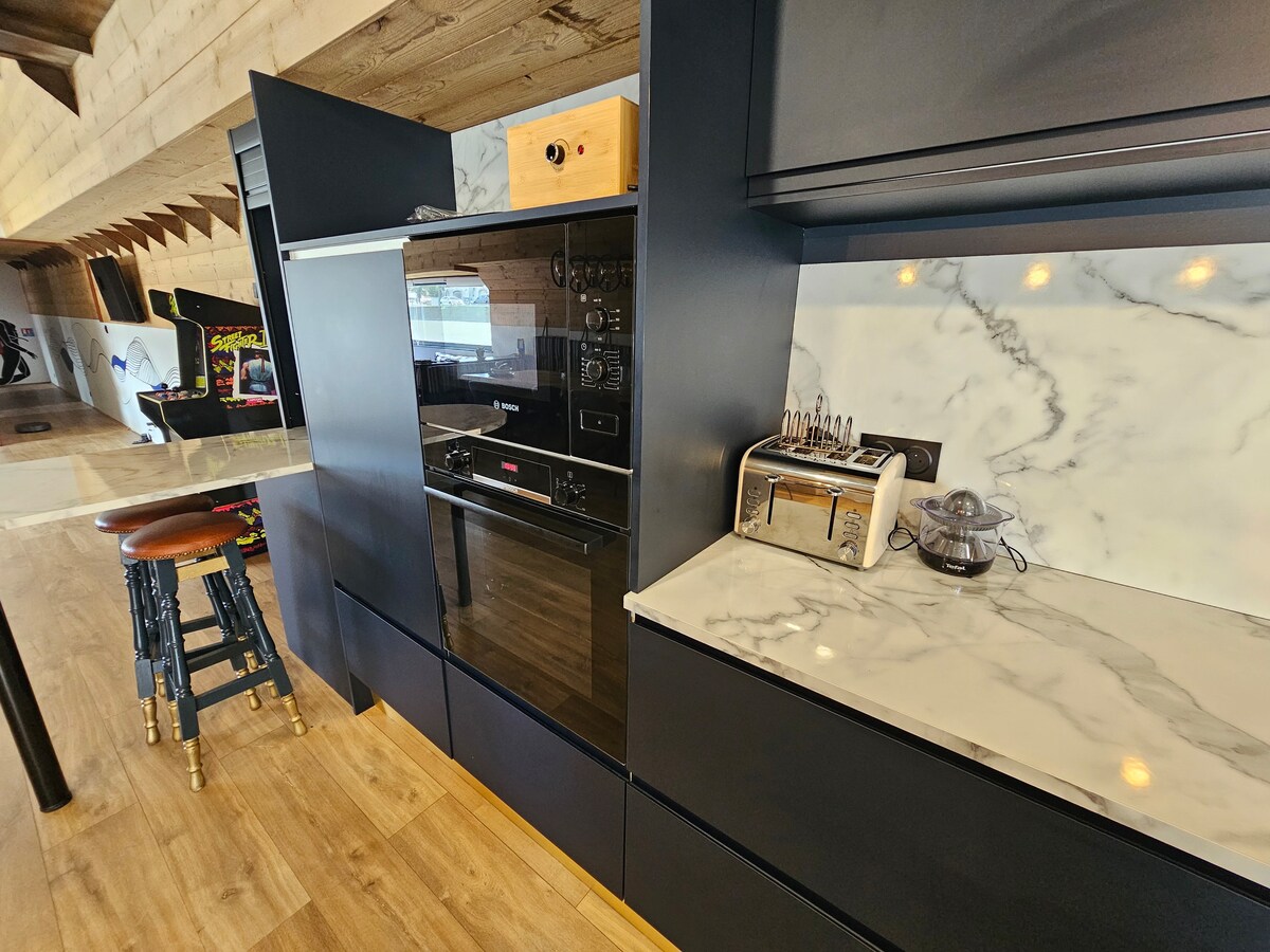 Nestled in an old farmhouse, Le Cottage is a fully renovated, air-conditioned guest room designed to offer you a real moment of escape. Enjoy an intimate and comfortable space with many amenities dedicated to your well-being. ✨ Private spa with balneotherapy bathtub, infrared sauna Coffee maker and kettle (tea and coffee available) Fridge and microwave 🔊 Marshall Speaker Overhead projector access to YouTube, Netflix, Disney+ and Canal+ channels