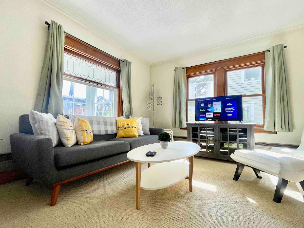 This private lower unit is centrally located in the family-friendly Parkside neighborhood in North Buffalo. Just off of Delaware Park, it's a short walk to the Buffalo Zoo or to Frank Lloyd Wright's Martin House, a ten minute drive to downtown Buffalo, and a thirty minute drive to Niagara Falls. Less than one mile from Hertel Ave., guests will also have easy access to the best of Buffalo, including restaurants, bars, shops, grocery stores, pharmacies, and the historic North Park movie theatre.