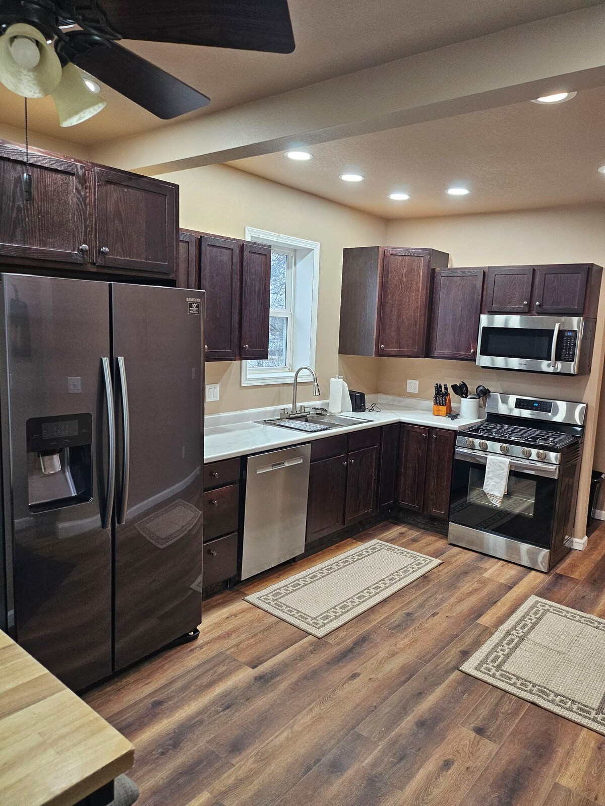 This unique place has a style all its own. Hideaway House is the perfect place to relax and enjoy a completely updated home behind the facade of a rural country cabin. A brand new hickory kitchen with stainless appliances contains all you’ll need to make cooking meals easy, while the open living and dining area provide a comfortable place to lounge. The smart TV makes it easy to stream whatever you’re into and the lamps and overhead lighting provide a perfect reading atmosphere.