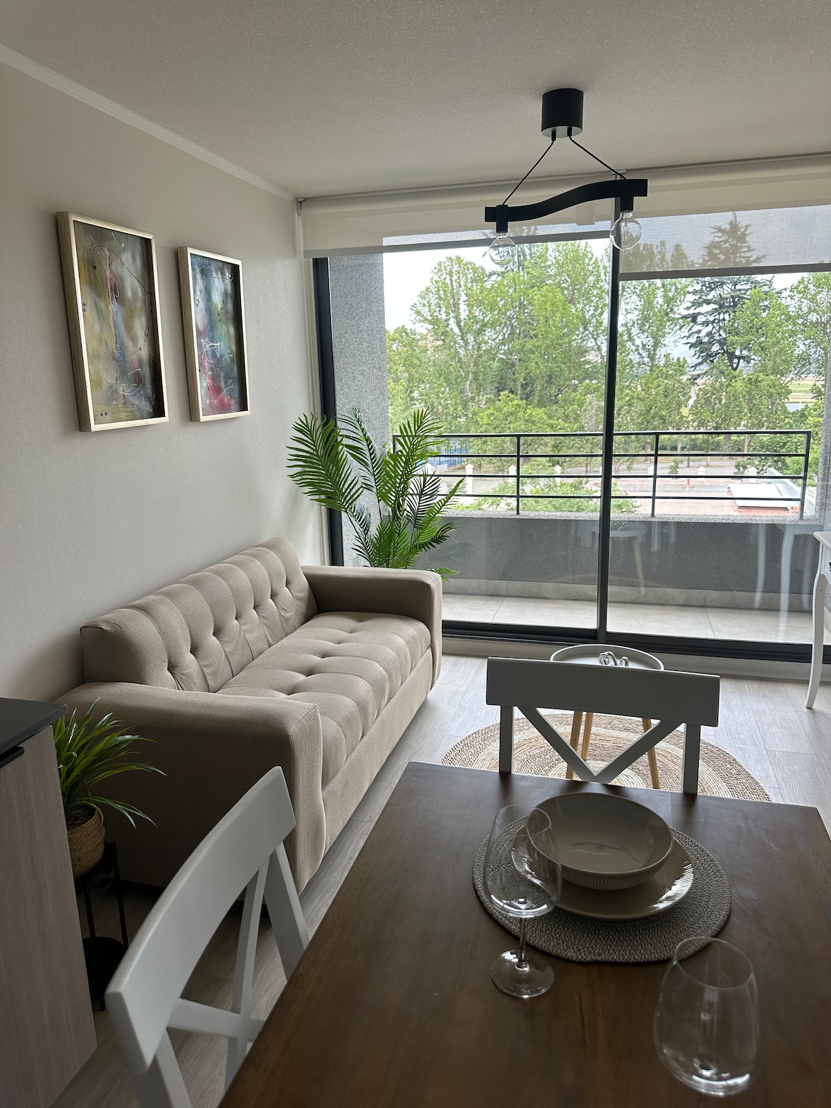 ✨ Un refugio elevado con vista a la ciudad, pensado para desconectar sin salir de ella. 📍 Ubicado en altura con vista panorámica, decorado con estilo y cercano a Movistar Arena, Club Hípico y Fantasilandia. 🌇 Perfecto para escapadas urbanas, venidas a conciertos y turismo en Santiago. 🔑 Equipado para 4 huéspedes. 📶 Check in flexible, Wifi alta velocidad, TV 50"" con Netflix y Zapping, Aire acondicionado, Balcón equipado, los niños son bienvenidos!! Incluye servicio de sábanas y toallas.