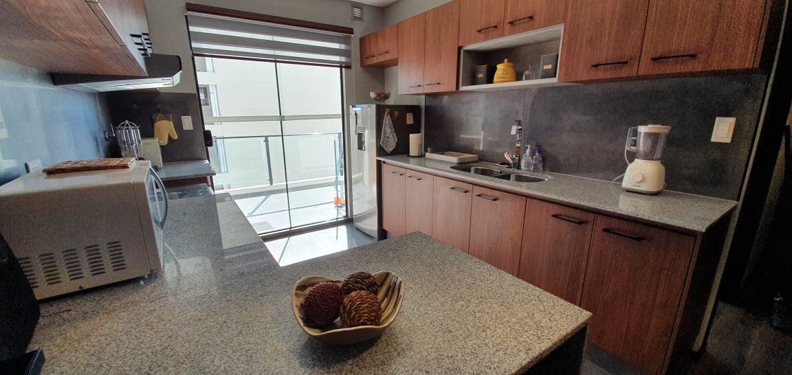 Spacious and bright apartment, it has 1 suite with a double bed and 1 bedroom with two beds and an extra bathroom. It's perfect for people with remote work, families or groups of friends looking to spend a nice stay in Cocha in a modern vintage style. 🛜 100MBPS The kitchen is equipped in case you prefer to cook something. The building has 24/7 security, gym, pool and saunas. Lincoln Park is a beautiful green area to connect with nature and/or exercise.