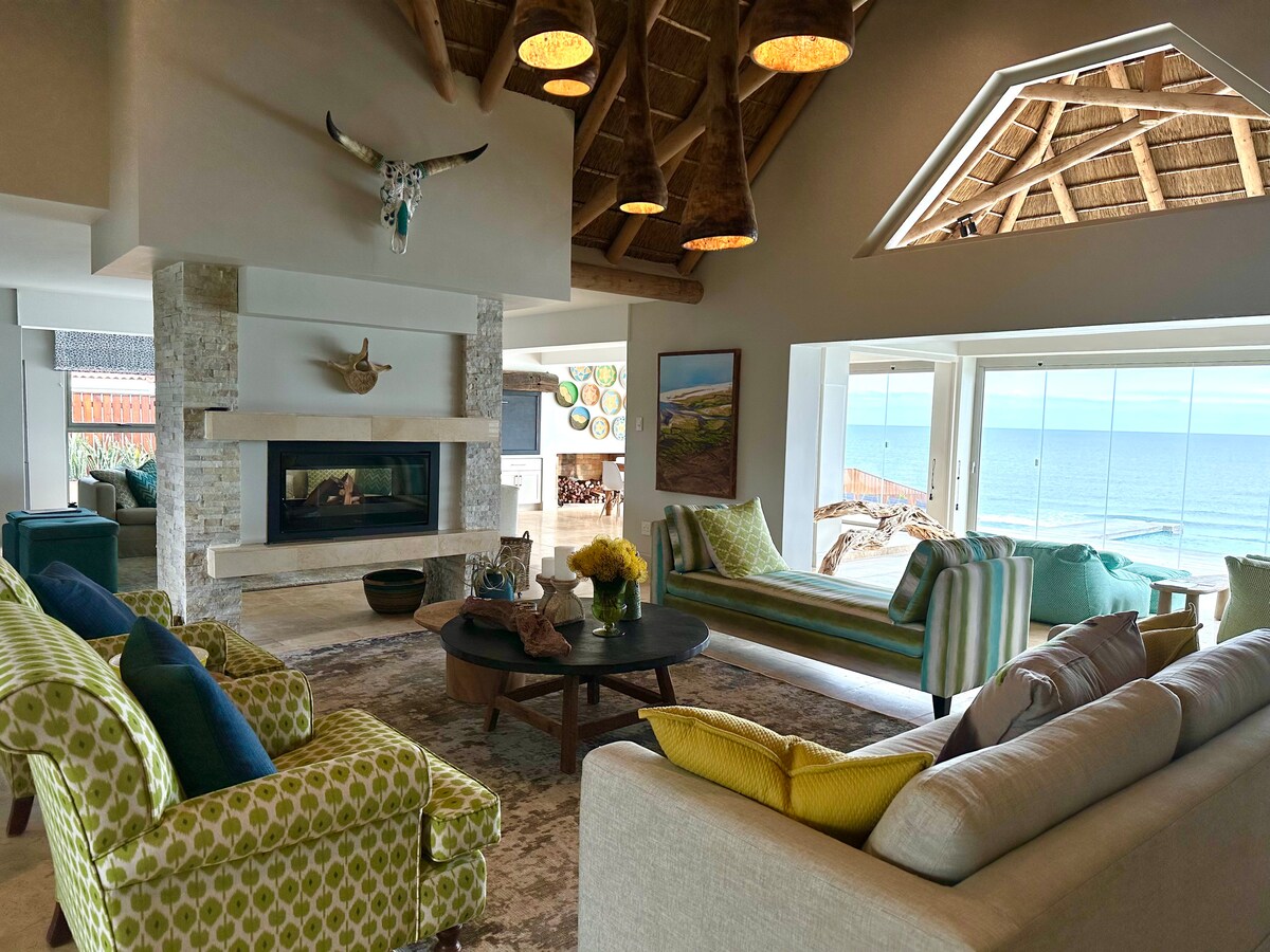 Perched high on a dune, Bahari is right on the sea front enjoying 180 degree sea views. It is a newly refurbished luxury villa situated in the exclusive enclave of Cola Beach in the tranquil village of Sedgefield, known as the "Slow Town" of South Africa. Approximately 400 square meter luxury villa Self check-in with access code Powered with Inverter/Batteries during power outages Workspaces in most bedrooms High speed Wifi connectivity