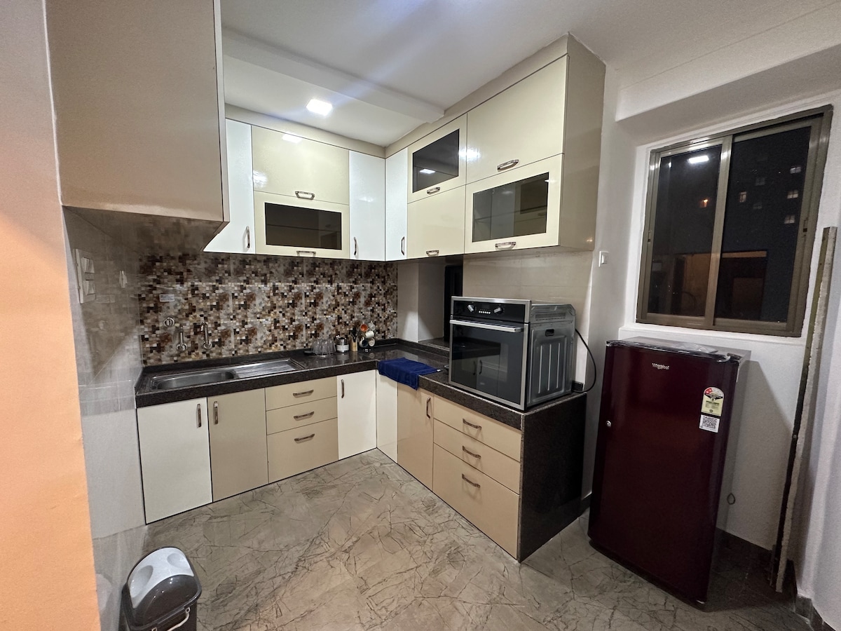 This 2BHK space has recently undergone renovations and offers a range of amenities, including air conditioning, a television, high-quality memory foam beds, and luxurious furniture. Additionally, it features a spacious balcony for your relaxation. Also kindly note that the way to the 2nd bedroom is to go through the first bedroom. There is no separate pathway. We have breakfast available at ala carte prices. Kindly send me a message to explore breakfast options.