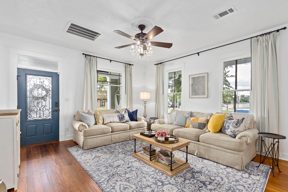 This 1920’s inspired historical home is located just a short walk from downtown Bryan! There are 2-bedrooms and 1 bathroom plus two queen-sized pullout couches in the living room and reading room. Outside enjoy the screened-in back porch, fire pit, and corn hole. Whether you’re here to experience the charm of downtown Bryan or heading to Kyle Field for a game, this home offers all the amenities you need for a memorable stay!