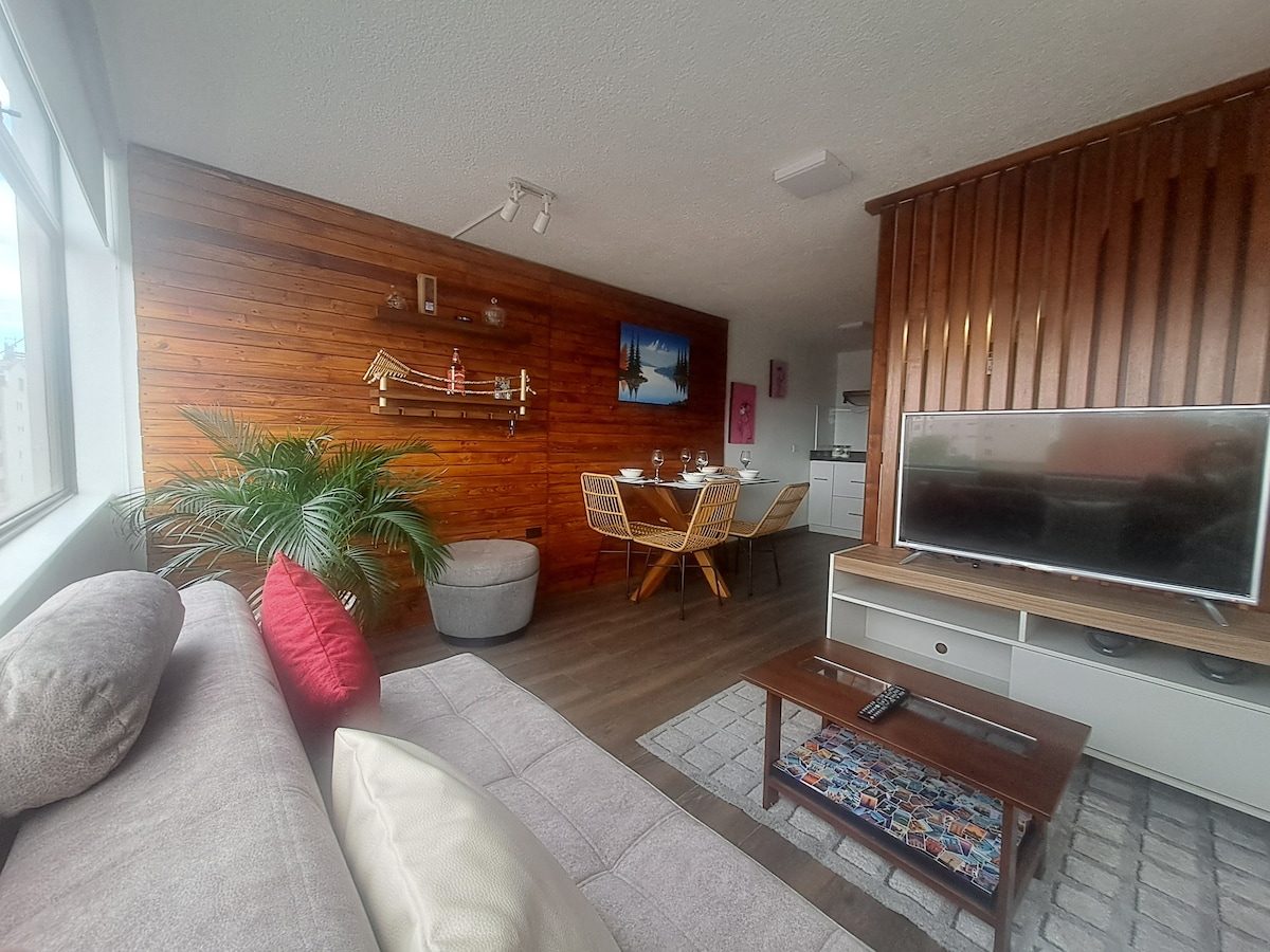 Very cozy 😊, bright 💡, fully equipped, and perfectly located 📍 — you won’t be sharing it with anyone else! We have a Power Generator ⚡ for your comfort. In North-Central Quito, just one block from La Carolina Park 🌳, Mall El Jardín 🛍️, Chamber of Commerce, and Metro Station 🚇. Close to Quicentro and CCI Mall. Banks 🏦 and restaurants 🍽️ nearby, but on a calm, quiet street. Enjoy Gym 🏋️, Co-working 💻, Game Room 🎲, BBQ 🍖, and Jacuzzi 🛁!