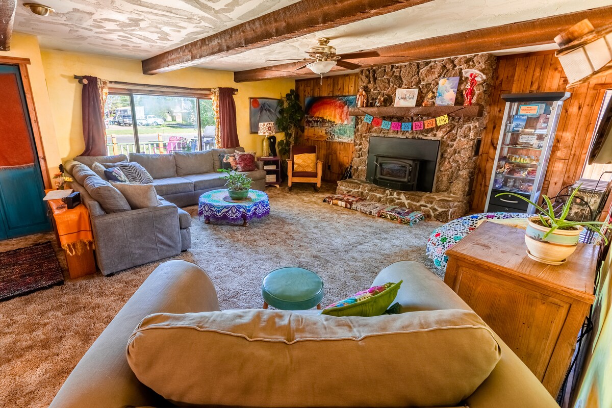 Located in heart of Gunnison: it's a quiet residential hostel feels like coming home. Perfect for groups, families, couples, or solo travelers. We have a large communal kitchen, living space, backyard. Lg private has 2 beds w/ queen and futon.