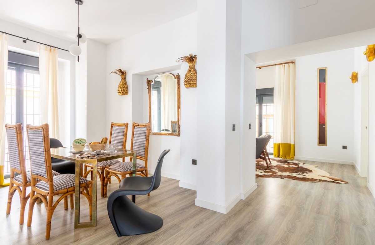 The MURILLO ELEGANCE & COMFORT apartment has an exceptional location, allowing you to walk to Seville's main tourist attractions. This space has been designed to offer spaciousness and serenity, giving you the feeling of being in your own home. Nearby, you'll find a variety of shops, restaurants, and cafes that will add comfort to your experience. It has excellent public transportation connections and nearby parking.