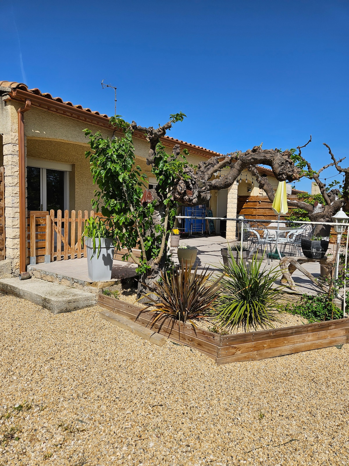 Welcome to the chic suburb of Montpellier🙂. This ⭐️⭐️⭐️ classified tourist accommodation is a two-room apartment located on the ground floor of our villa surrounded by pine trees, olive trees, oleanders and other southern species. With its independent entrance and no one overlooking, it offers total privacy. Spacious, bright, single-story, it is decorated with a large private shaded terrace and faces north. In training, on vacation, or for work, you will be at home here! All you have to do is put your bags down 🙂