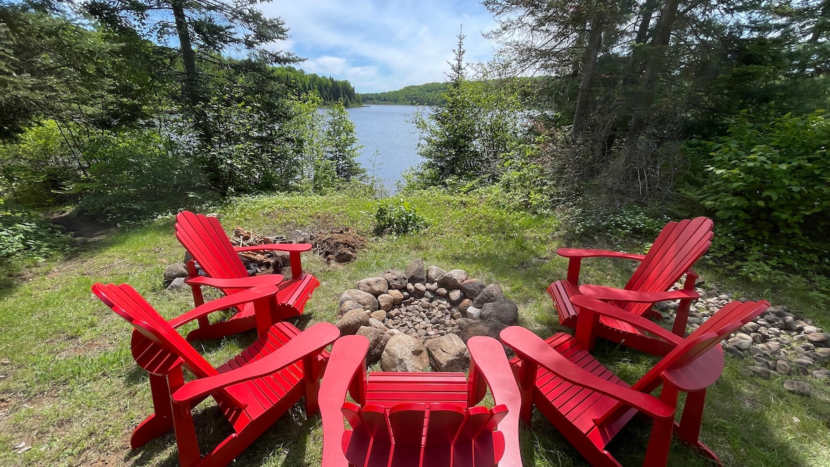 Welcome to AAT, your waterfront Timber A-Frame escape. Perched above the French River. Surrounded by 2+ acres of northern forest, this architectural retreat blends luxury and nature. Gather in the bright open-concept space or unwind outdoors by the fire or in the year-round hot tub. Sleeps 6 with a cozy loft and a wheelchair-friendly primary king room. Designed for connection, comfort, and unforgettable moments. Make lasting memories at AAT.