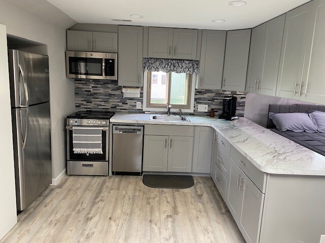 Enjoy a special experience in your luxury, private one bedroom flat, located in charming downtown Milford. While apart of a triplex, you will have your very own flat that includes everything you will need to have an outstanding stay. This recently remodeled flat includes an open floor plan with a well equipped kitchen, inviting living room, spacious bedroom with a queen size bed and even an over-sized desk so that you can "work from home", and a "to die" for bathroom. Two blocks from Mainstreet.