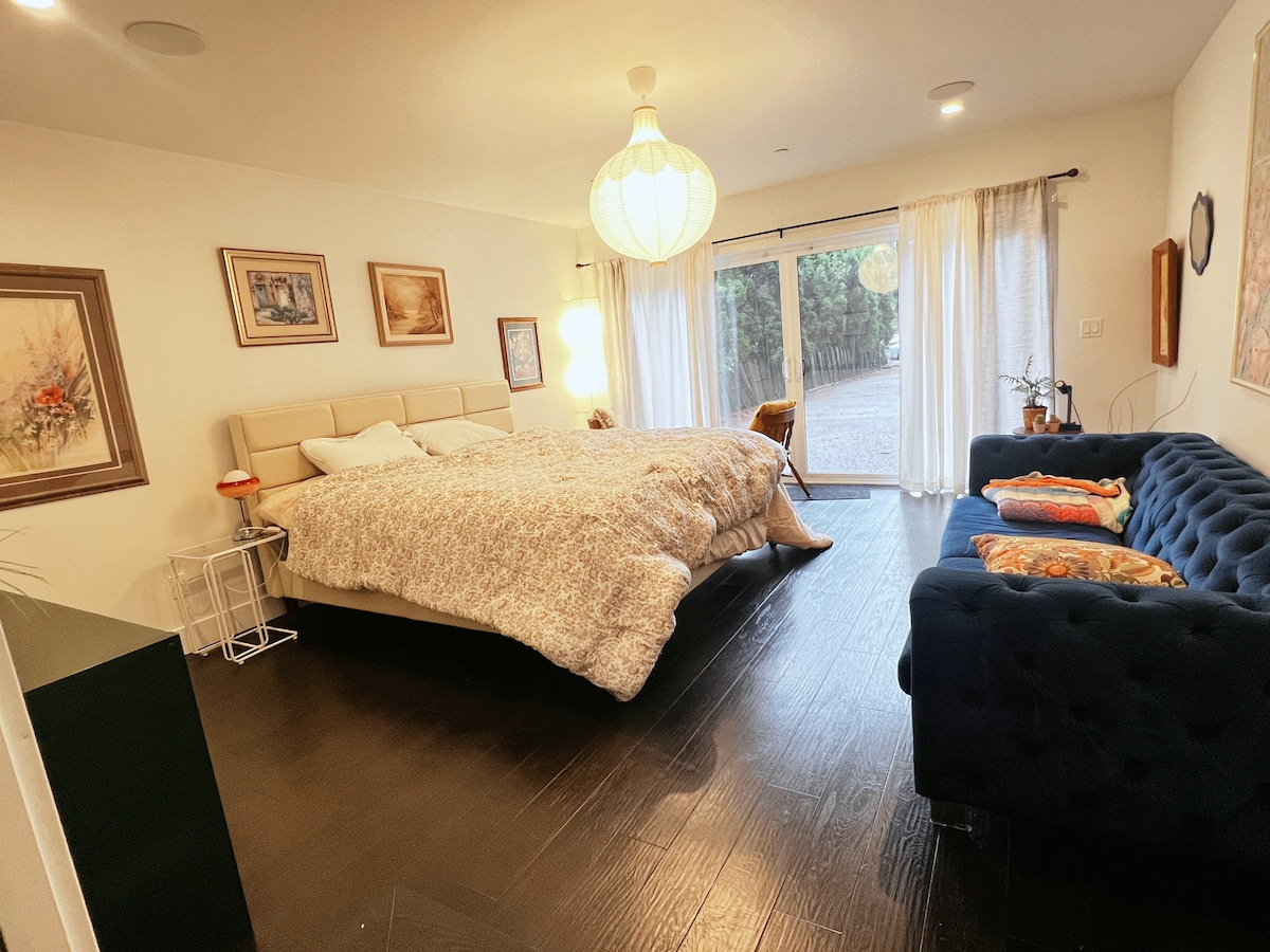 1,200 sqft South facing garden suite sits directly on Trout Lake park. Are you looking for the best of both worlds when you travel? A convenient urban and sightseeing experience, and the comforts of a relaxing home where you can chill out and decompress away from the crowds. Parents can relax on the back deck, kids can play on the Trampoline/or hang out in the park. PLEASE NOTE the top two floors of the home are occupied.