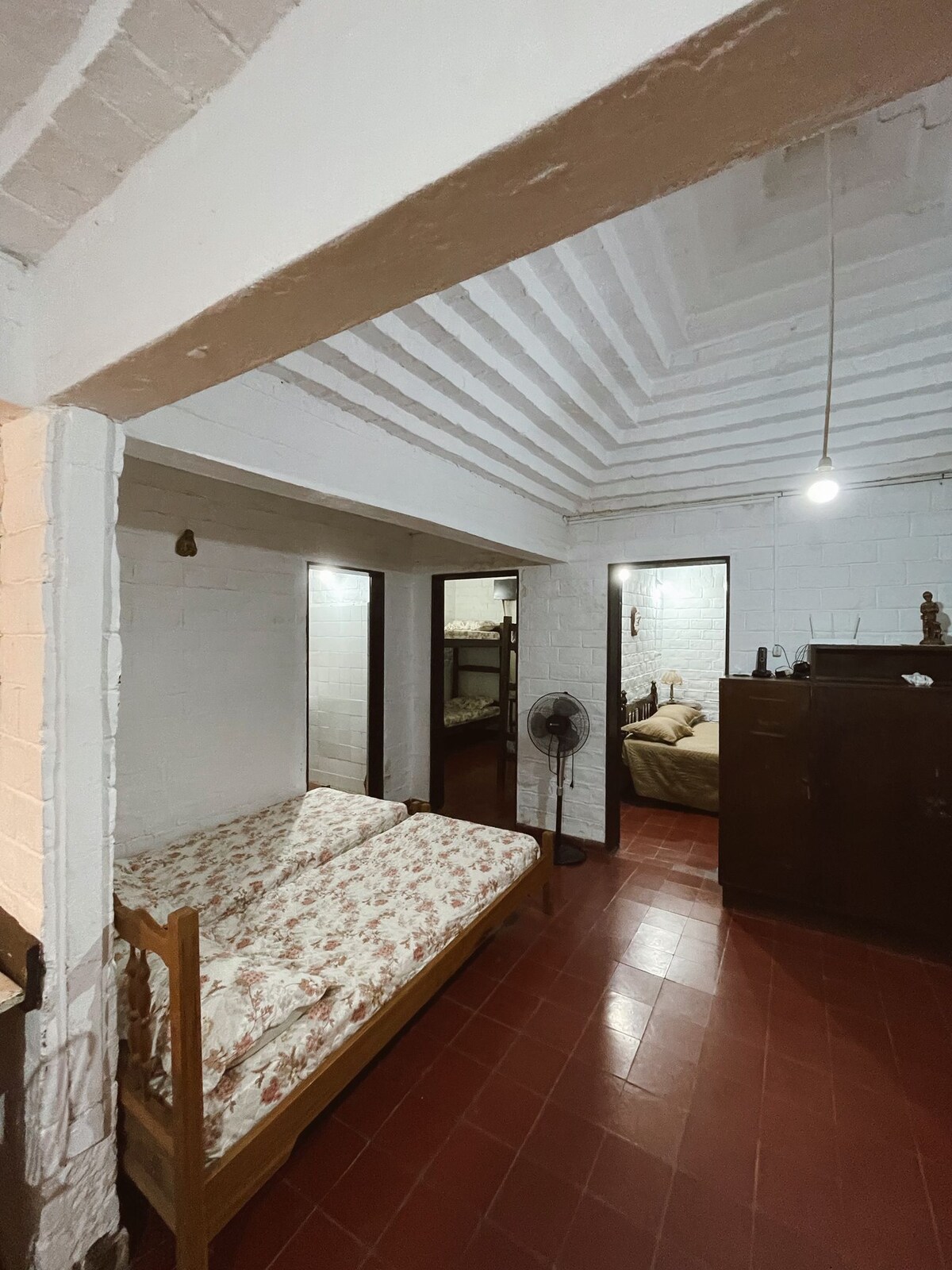 Large house in Jardines neighborhood of Termas Daymán. A quiet place to enjoy as a family. Green spaces with gardens, pergolas, garden sets (tables, chairs, lounge chairs, armchairs) Cold water pool, 8m in diameter with shower (enabled from November to April) with 3 defined bedrooms with AC. 2 with beds for 2 people, another with 2 for 1 person; plus 2 bunk beds. Large living-dining room integrated into kitchen with AC 2 bathrooms Outdoor security cameras Wi-Fi Cable TV Garage Separate utility room