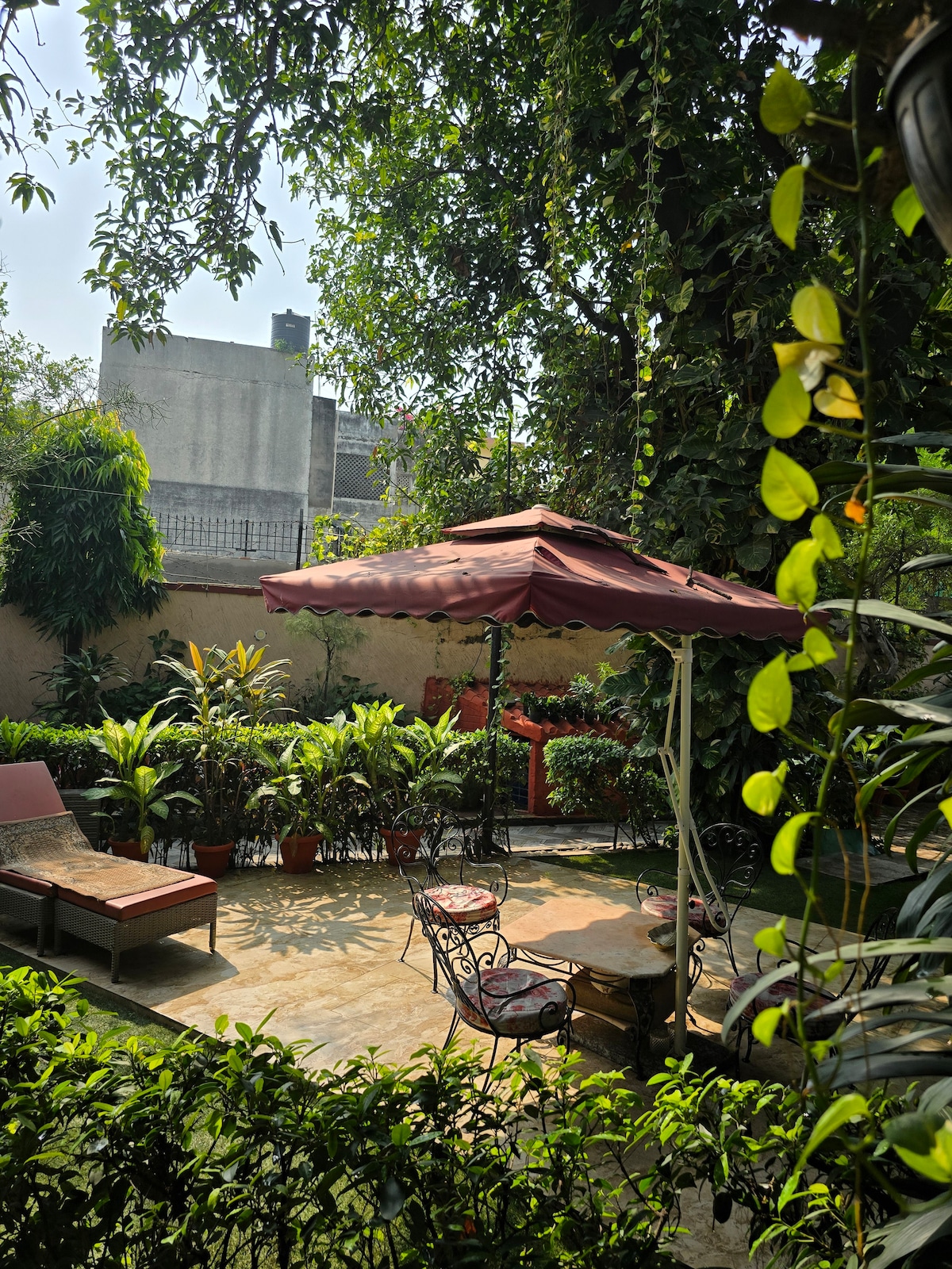 Self Check in available upon request Fully equipped private apartment with kitchen on split level overlooking terrace. Private terrace and balcony surrounded by lush greenery. Centrally located in a historic neighborhood in New Delhi. Private floor within a house shared with my family. Shared spaces include: laundry (at request) and gym equipped with dumbbells and free weights. Wifi included. Peaceful, well-lit, and walking distance to gardens, cafes, and heritage sites.