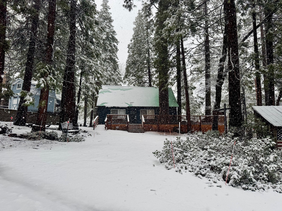 No car needed...Walk to EVERYTHING Shaver Lake has to offer! 1 MINUTE walk to Restaurants, Coffee, Ice Cream, Grocery stores, Snow Parks, Bars & Pubs! 12minute walk 2 the LAKE! Our family-friendly cozy cabin has everything if you choose to stay in. WIFI -SMART TVs +DVD -Outdoor BBQ -FRONT PATIO w/ Rocking Chairs & Picnic Area- 2nd Story BACK PATIO - SIT N' SIP Outdoor Firepit Lounge-DARTS -FIREPLACE -SNOW SLEDS -Complete Kitchen (Breakfast+ Starbucks Included) -Washer/Dryer+++ www~DropMyPin~com
