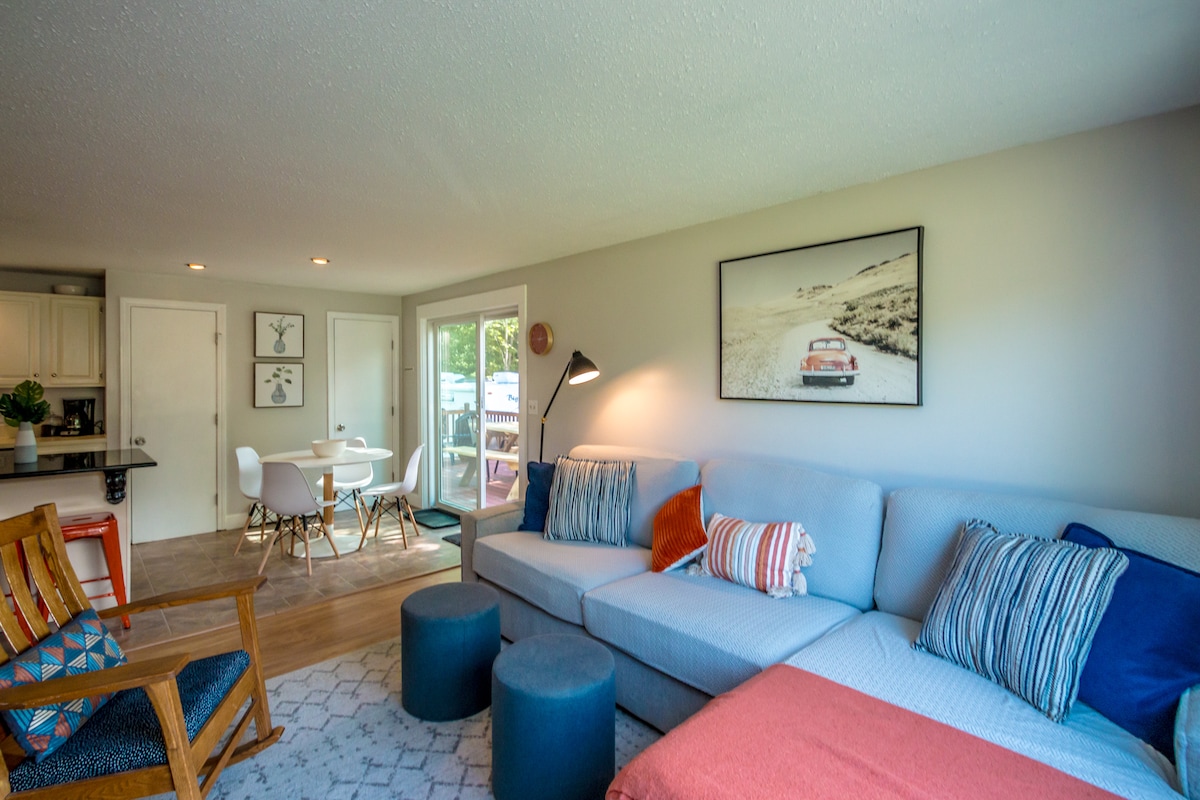 KimBills' is a newly renovated, cozy, first floor condo located at Attitash Mtn. Village, just minutes from the Saco River. Full kitchen well stocked with necessities, gas fireplace, A/C, Murphy bed and pull-out sofa bed with new, comfortable mattresses. Cable/internet, 55" TV, & board games. Large deck with lighting. Guests enjoy full use of all Attitash Mtn. Village amenities including river access, pools, sauna, hot tubs, tennis & basketball. Close to shopping and area attractions.