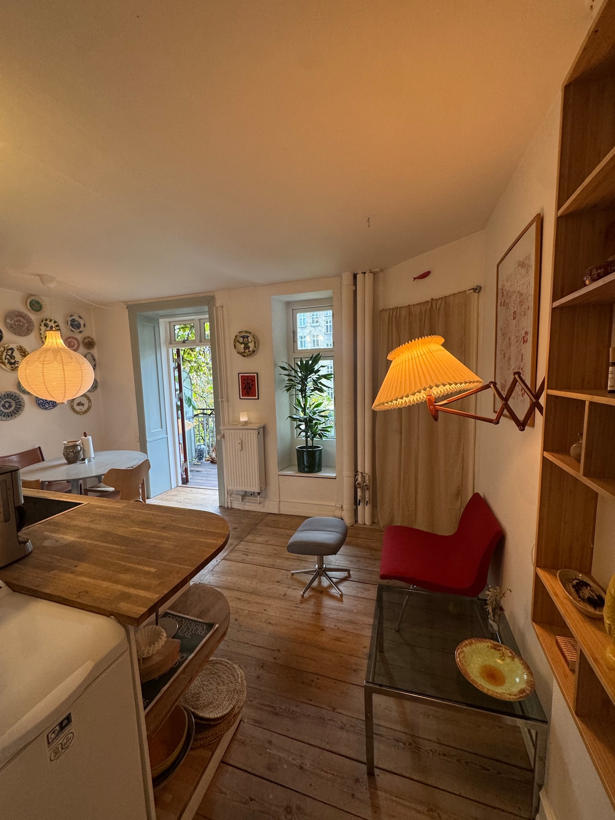 Welcome to our cosy flat in the very best part of Vesterbro! Next to a lovely green square, a great playground, and all the cool local cafes and bars just around the corner. Our home comes with Smilla the cat, and a few friendly plants, that just ask for a little care while you’re here. 💚 The flat is in an old house that has its quirks (hallway a little worn, kitchen a little small) but everything works just fine. It also boast’s a lovely balcony shaded by a big maple tree 🌳