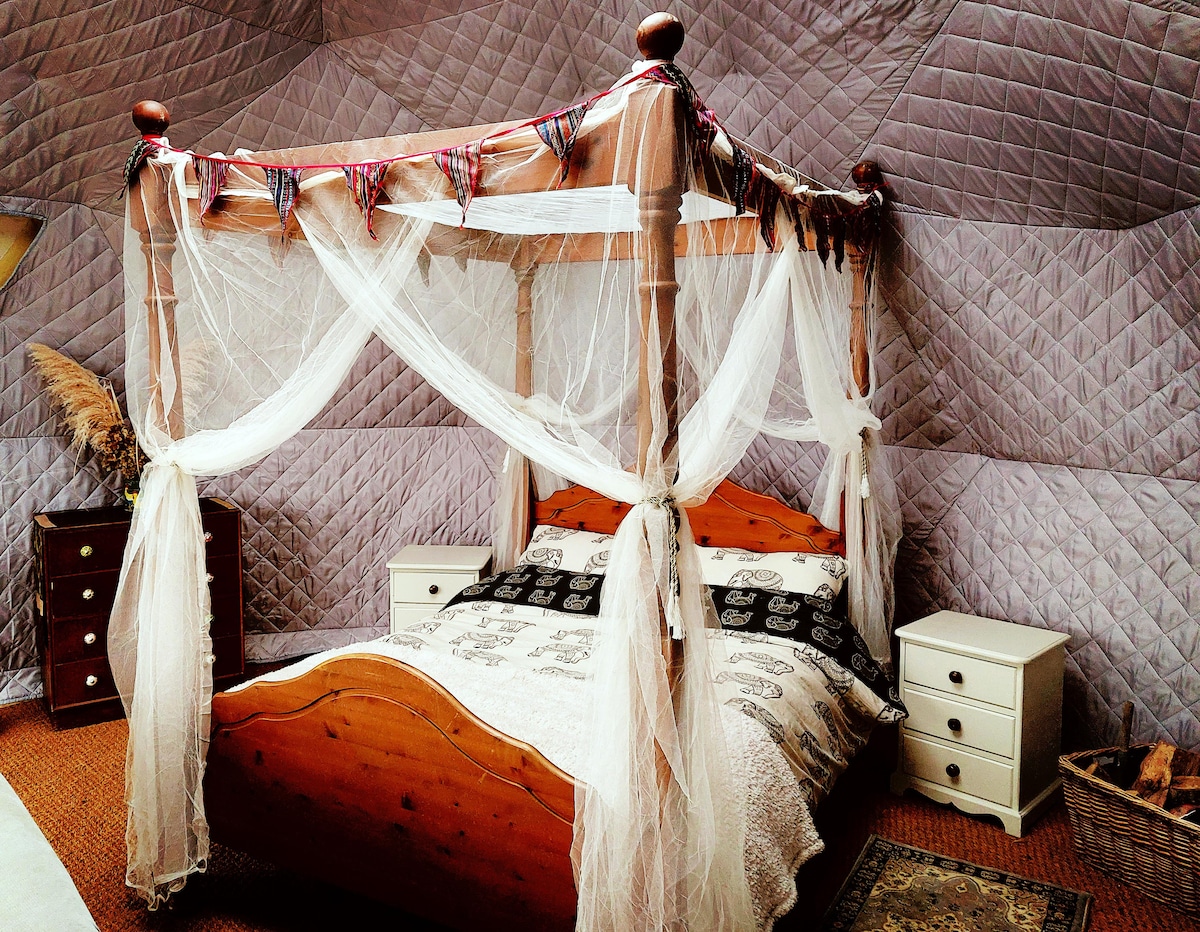 Beautiful Adult only geodesic dome situated on our family run campsite. The dome consists of one double bed, Free view TV, Wood burner. tea coffee facilities , Gas BBQ , Mini fridge and much more. Shared showers and toilets on site Full licensed bar serving locals drinks and food Small shop and launderette on site Bedding included along with towels