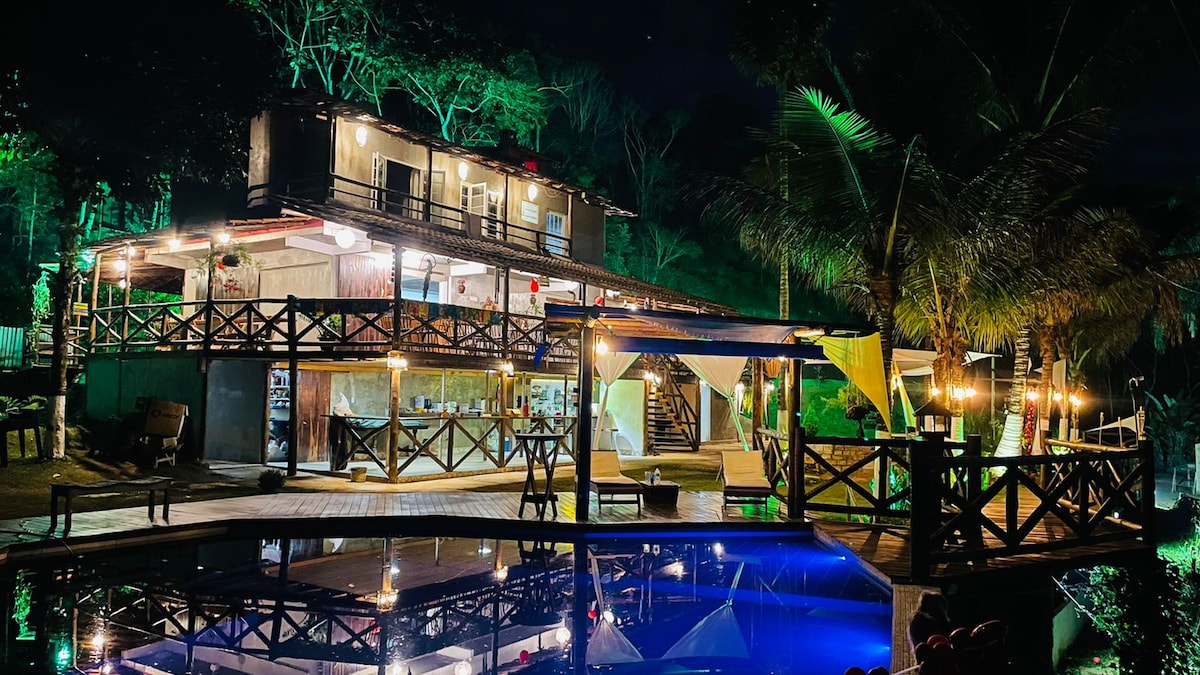 Our Chalet was built for this purpose: Disconnect from the city, experience the simplicity of nature, walk with your feet in the grass, feel the fresh air and the birdsong. Composed of 2 bedrooms, 1 living room, 1 bathroom, 1 kitchen, 1 gourmet area containing a barbecue, oven and wood stove, 1 freezer, 1 toilet and balcony. Bed and bath linens, ceiling fans, TV and Wi-Fi. The restaurant is currently closed. However, the environment has all the structure to prepare meals. š·