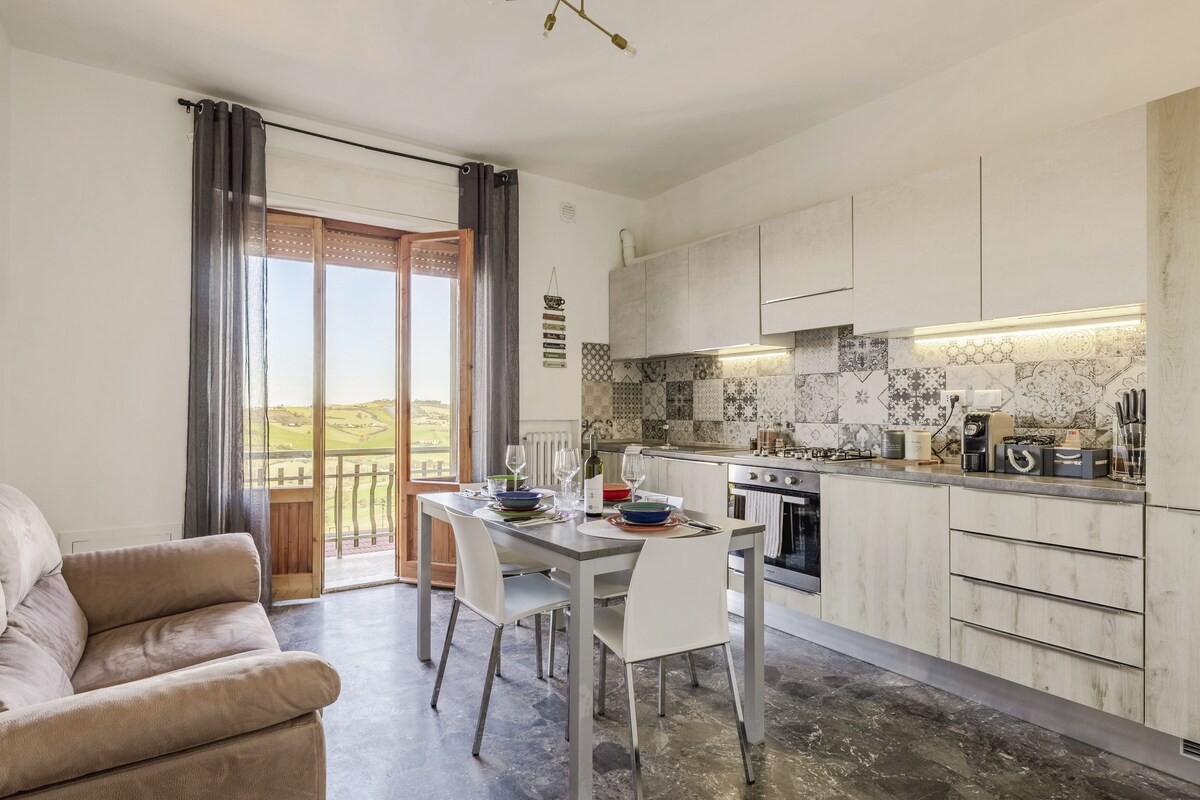 Casetta RosaClara is a former barn inside the courtyard of Casale del Gelso (ancient farmhouse of the late 1800s) located in the Marche countryside. Independent, it consists of two mini apartments of about 40 sqm each and communicating. Very bright and panoramic, it has a terrace/solarium and a pleasant and beautiful space, common to the two rooms, where you can relax and refresh. Newly renovated, it has all the amenities, harmonizing tradition with modern needs.