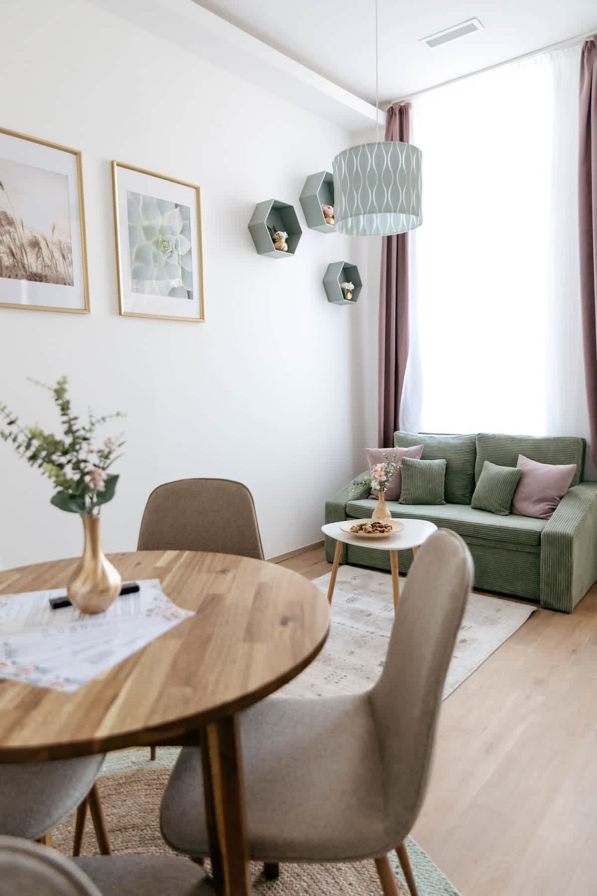 Bright and spacious, nicely arranged flat is now available in the dashing Corvin Quarter (known for an attractive mix of new developments and old buildings with historical charm). The flat hosts up to 4 people - ideal for families. There is a private bedroom, a living room, fully equipped kitchen and bathroom with tub. The flat has balconies towards the garden. Quiet and peaceful place in the middle of the city, while also very well connected to tourist interests.