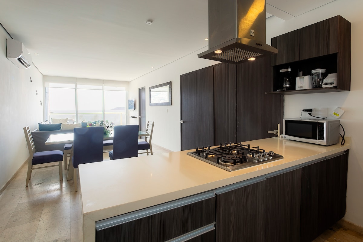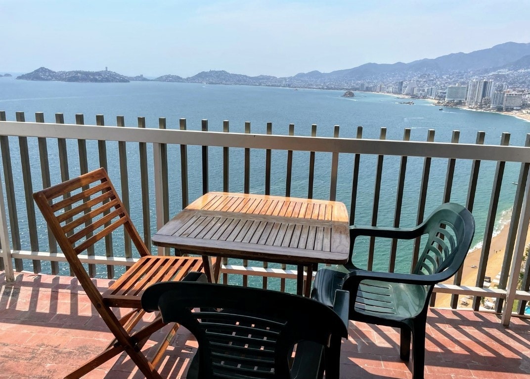 Wake up to spectacular views of Acapulco Bay from this remodeled apartment on the 19th floor. Located in the best area. Enjoy a private terrace overlooking the ocean, two bedrooms with full bathrooms, air conditioning, Smart TV, fast WIFI, fully equipped modern kitchen. Every detail is designed for your comfort: anti-cyclonic windows and gates, premium bedding, free covered parking, private beach and bright spaces that invite you to relax.