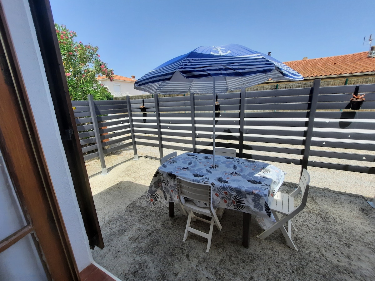2-room apartment, garden terrace, close to Collioure