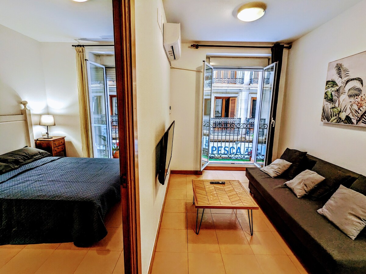 Super cozy apartment in the very center of Alicante. On the same Calle Mayor as the town hall, a pedestrian street full of restaurant terraces, a step away from the Postiguet beach and the marina, at the foot of the Santa Bárbara Castle and all the places of interest in the city. The apartment consists of 1 bedroom with a double bed, a living room with a sofa bed and a balcony overlooking Calle Mayor, an equipped kitchen and a complete bathroom. VT-501688-A