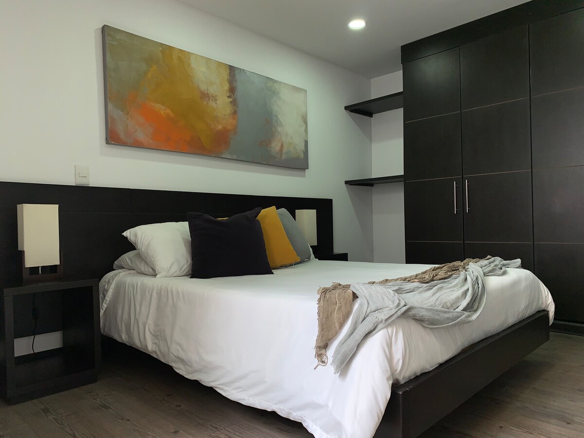 Nice studio apartment ideal for teleworking, excellent option for LONG STAYS and UNIVERSITY HOUSING. It has a private bathroom with a hot water shower, a fully equipped private kitchen, a laptop desk, a dining room, a 40-inch TV, WiFi, a washer and a dryer. Located on a 3rd floor with no elevator, excellent lighting and ventilation. We are close to Plaza Imperial, the CORPAS University Clinic and sports complexes on the Cota road Spa service and transportation at an additional cost