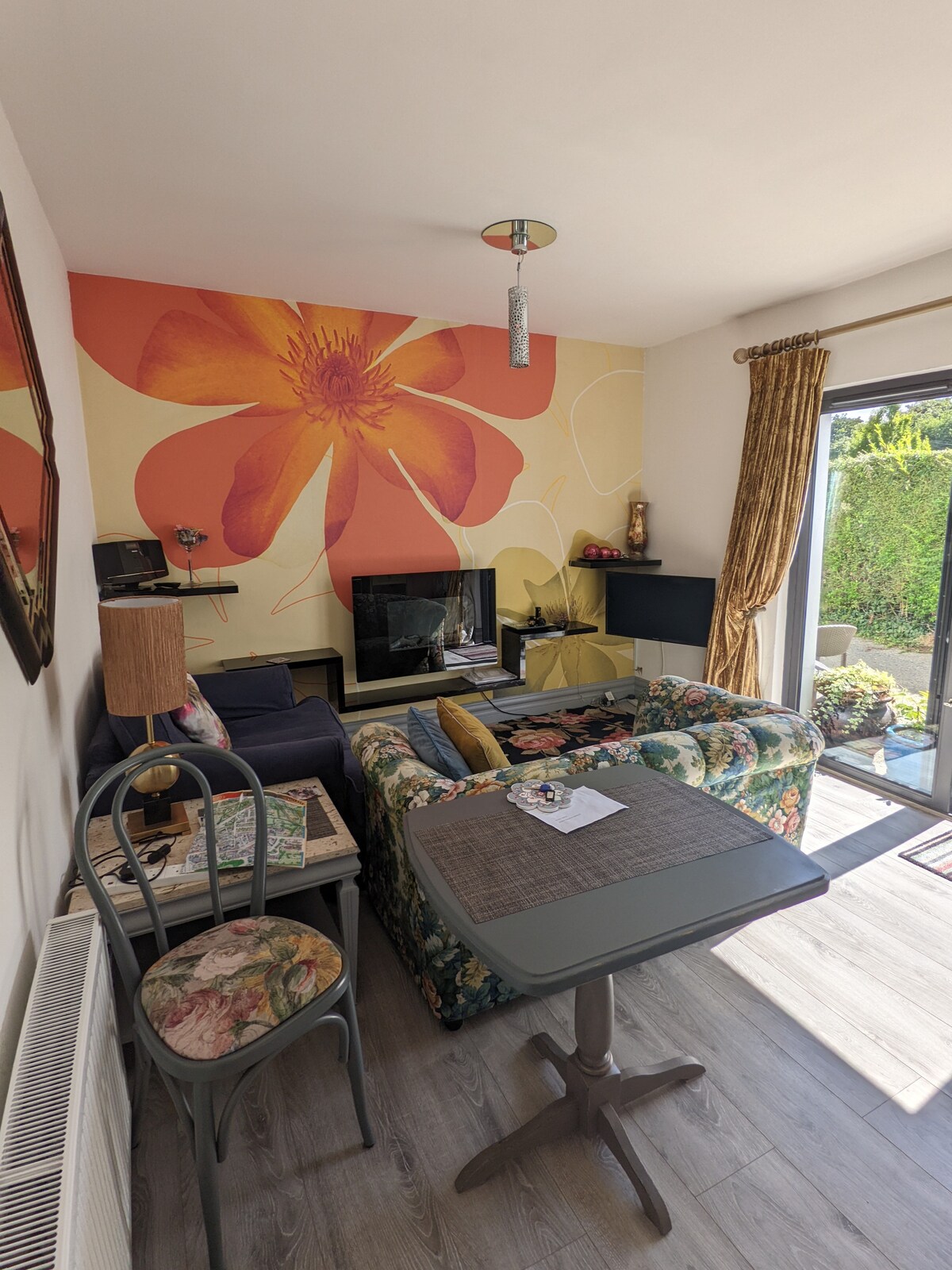 Self-contained accommodation with one bedroom and ensuite bathroom, living and dining areas plus a full kitchen. Networked wifi, including outdoors. A secluded outdoor seating area. Free parking and two bicycles included on-site. Travel cot and high chair available upon request. Directly across N72, guests can access Fossa Way – a walking / cycling trail - to Killarney town center (approximately 4 km or 2.5 miles) and have direct access Killarney National Park.