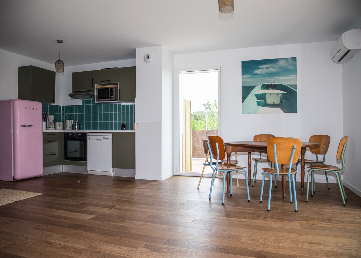 SurfersVilla, located in Seignosse, a 2-minute drive from Hossegor and its famous lake, is a unique 110 m² property that can accommodate up to 6 people. It’s a perfect spot to enjoy the Landes beaches and the best surf spots in Europe. - Beach 300 m away (within walking distance). - Direct bike paths to Hossegor and the center. - Quick access to the Hossegor/Seignosse surf spots. Surrounded by the ocean, the forest, and a surfing vibe, this is the perfect place for a stay with family or friends.