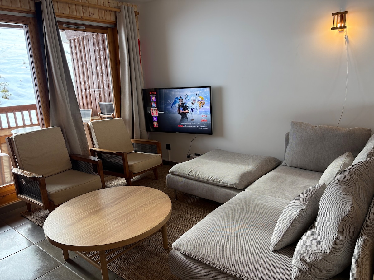 Chalet at Belvédère de 1650, popular area of Courchevel, at the foot of the slopes Ideal for Alpine skiing starting in front of the terrace, cross-country skiing, hiking, sledding! Cross-cutting renovated in 2025 At the entrance to the Parc de la Vanoise (Tk des Granges 100 m below). Enjoy walks in the forest, marked trails, picnic at Lake Rosière, waterfalls! Very sunny area, south-facing, apartment with no overlooking neighbors. Room side, mountain view.