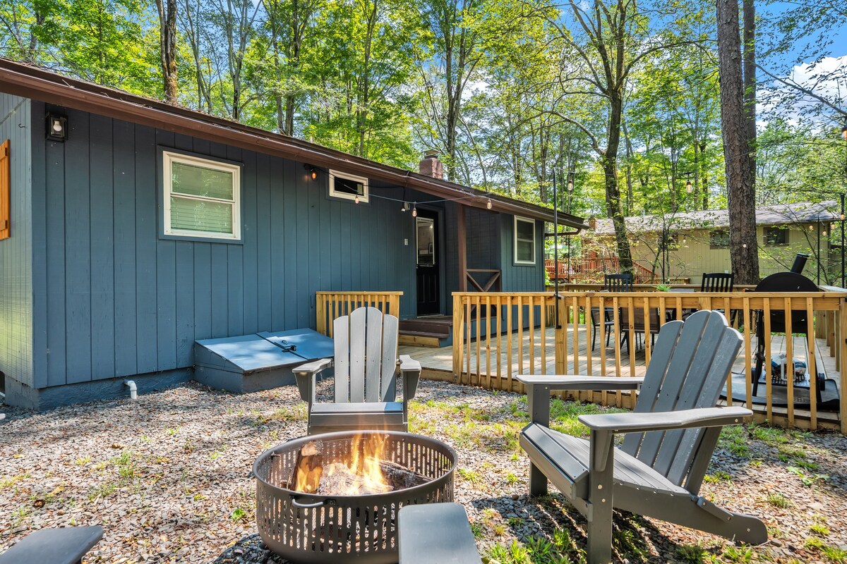 Skylight Chalet: Your private escape in the heart of the Pocono Mountains. Situated on nearly an acre of lush forest & boulders our retreat offers a perfect balance of comfort, coziness, and relaxation. Unwind in the hot tub beneath the stars, rejuvenate in the sauna, or gather around the fire pit for cozy evenings with friends & family. Whether you seek adventure or peaceful relaxation, our cabin provides a serene sanctuary for your getaway. 📅 Book today and secure your Pocono getaway!