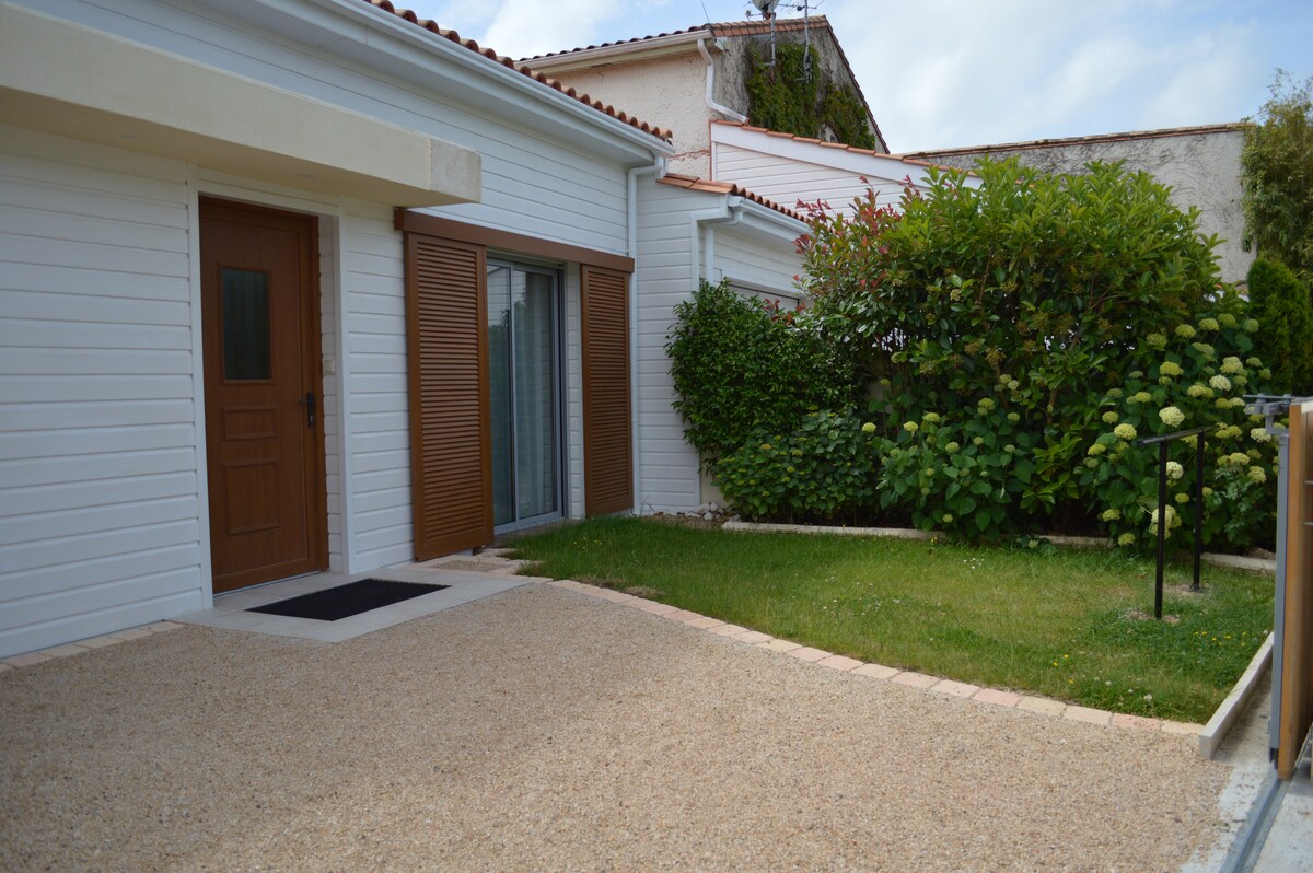 Quiet countryside studio at the foot of the vineyards with an enclosed garden, located between Royan and Saintes, 15 km from the beaches and 6 km from the Saujon thermal baths. The studio is composed of a large living room with a mezzanine, an entrance with a wardrobe and a bathroom.