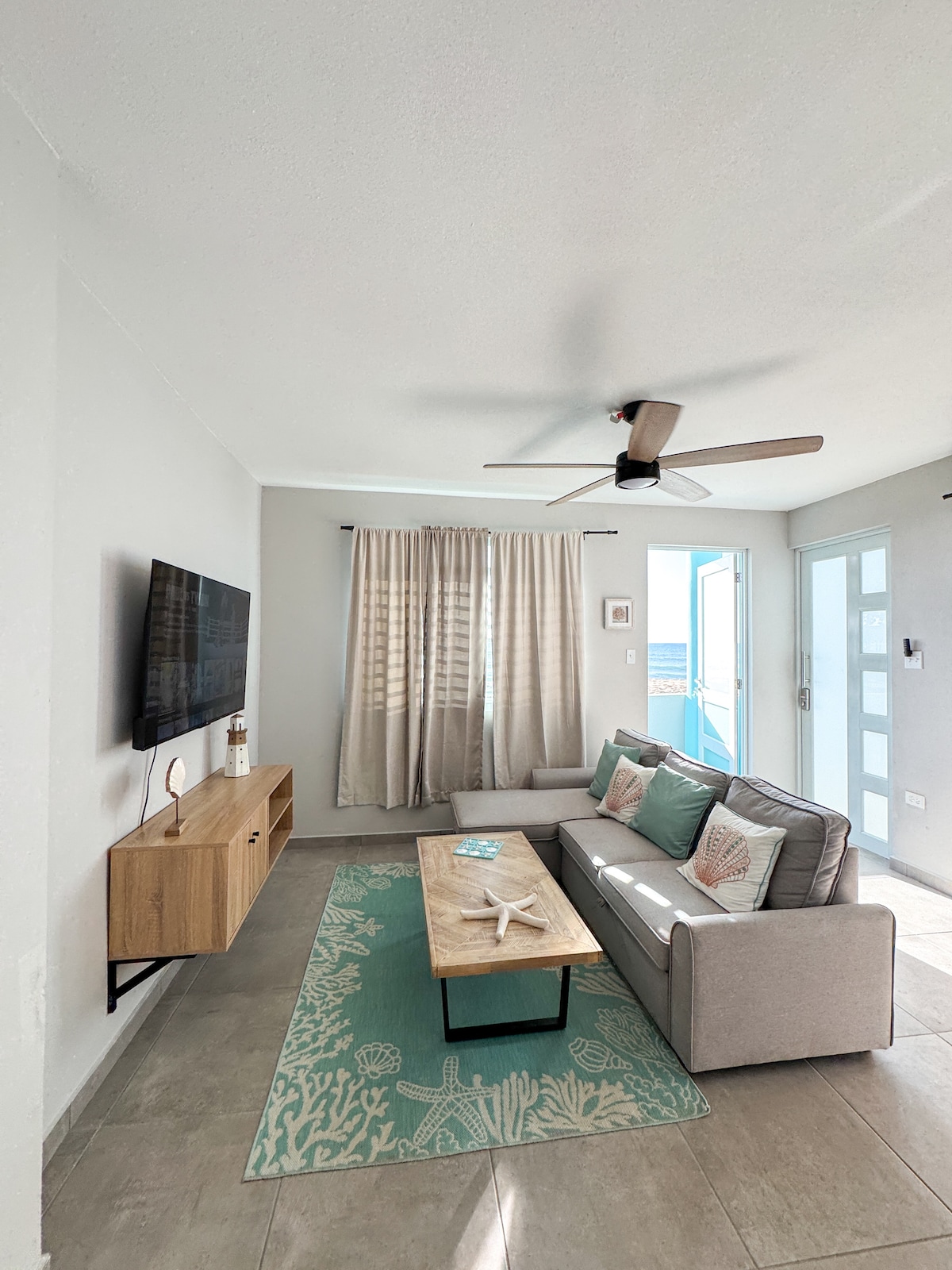 Come & enjoy this beautiful studio with amazing ocean views in every corner. Perfect place for couples to seat on the balcony enjoying a cup of coffee or wine while you see the sunset reflected on the ocean, getting up and sleeping with the beautiful sound of the waves. This beautiful beach front STUDIO is a truly dream come true. It’s literally steps from the beach with stairs to give you access. Located in Aguada, PR.