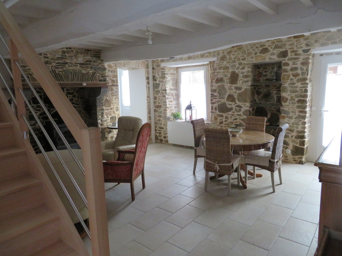 Renovated stone house between land and sea, 800 meters from an equestrian center, 3 km from the beach. The house has: - kitchen (washing machine, pyrolysis oven, ceramic hob, hood, refrigerator, microwave, Senseo) - living room with 80 cm LED TV - two bedrooms (one double bed with dresser and two single beds with dressing room) - table with 4 teak chairs - barbecue - 1 parking space You will find all the comforts you need for a good holiday with family or friends.