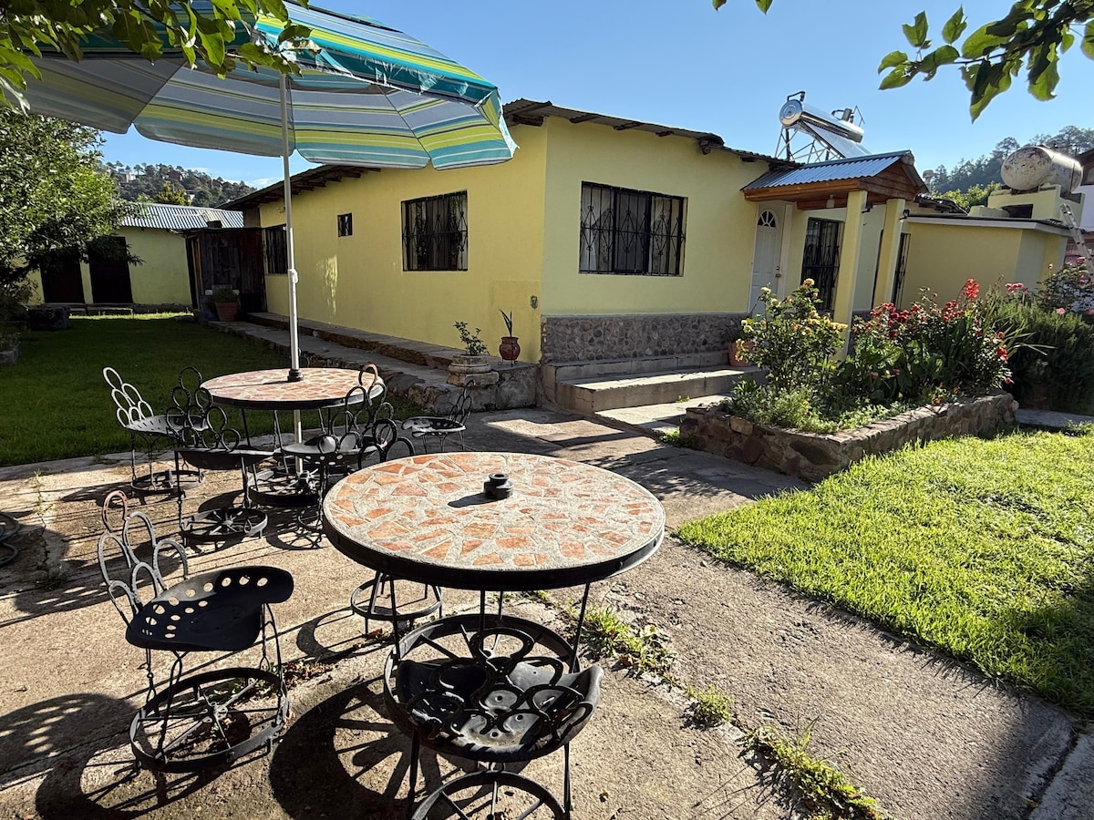 Despierta a los sonidos de la naturaleza y deja tus preocupaciones atrás. Esta cabaña está localizada en un área tranquila y boscosa🌲 dónde te encuentras tú y la naturaleza. Disfruta de un café ☕ caliente por la mañana 🌞en nuestro balcón con vista a los pinos 🌲⛰mientras escuchas los sonidos del silencio o una noche de lunada en nuestro fogatero🌛🔥