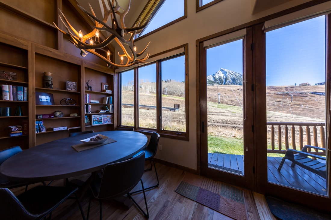 High-end Skyland home minutes from town with a panoramic view of the Mt. Crested Butte. Accommodates 9 people. Garage and driveway parking for up to 6 cars. Close to the golf course, bike path to town, nordic trails, single-track bike trails, and bus stop to the ski resort! Enjoy the chef's kitchen, fireplace, steam sauna, and den with wet bar. Create memories together with plenty of space to rest and retreat.
