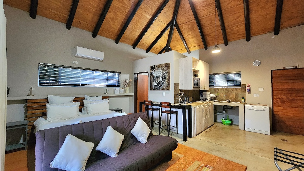 Catering for couples and single travellers, the lodge has four upmarket self-catering units. The lodge is completely off-grid so does not experience load-shedding. Unit 1 has a queen-sized bed, air-conditioner, its own fully equipped kitchen, bathroom and private veranda with uninterrupted views to the Crocodile River and the Kruger National Park.