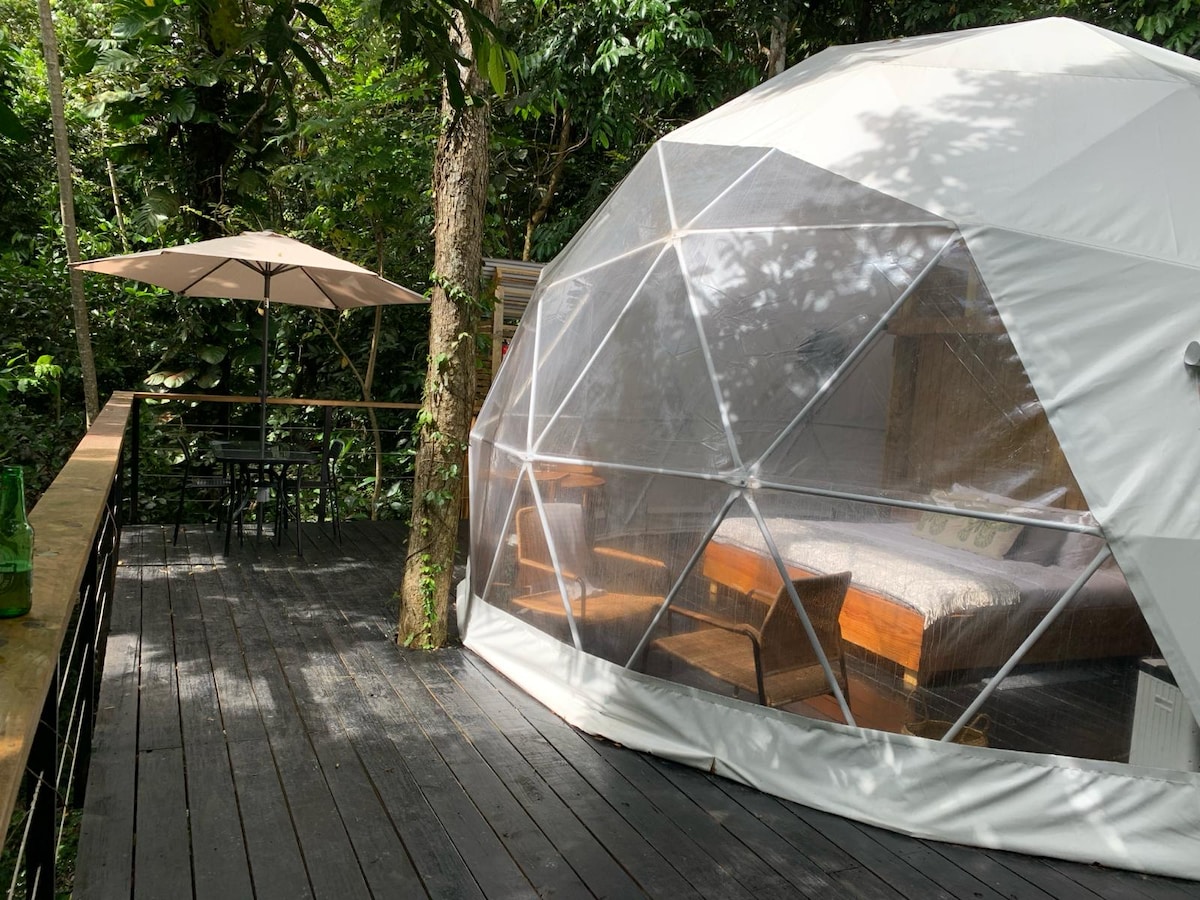Te invitamos a hacer una pausa y a crear memorias. Te invitamos a dormir en una Selva Tropical con todas las comodidades a solo 7 minutos de la vereda El Toro en El Yunque y a 30 minutos de San Juan. Te imaginas dormir en un Domo Geodésico transparente dentro de un bosque privado de 10,000 m2 con veredas privadas que te llevarán al Río Cubuy y poder bañarte en varias piscinas naturales y cascadas durante toda tu estadía. Tour virtual 360 incluido en las fotos QR CODE.