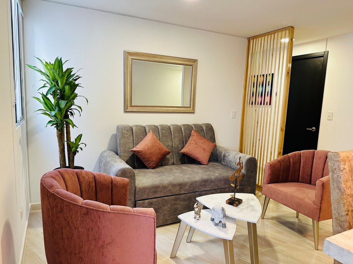 Enjoy a stylish experience in this accommodation, with spectacular lighting, air conditioning in the main room, with a prime location, all central, around you there are shops, with home delivery, also very close is Makro, EXITO, restaurants and nightclubs nearby, easy access to shopping centers and close to the city center, 24-hour reception and taxi service.