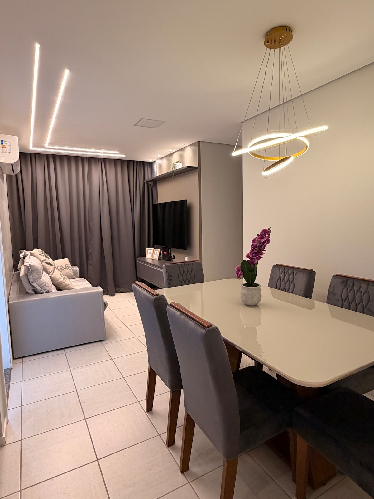Comfort, safety and fun for the entire family! Fully air-conditioned apartment with full kitchen, washing machine, 2 55" Smart TVs and complete bed and bath linen. Located in the upscale neighborhood of Cuiabá, close to Shopping Pantanal, Centro Político Administrativo, Hospital São Mateus, supermarkets and restaurants. Standard Club Condominium, with Swimming Pool, Playroom, Games Room, Gym, Soccer Court, Barbecue, Gourmet Space and a beautiful garden for contemplation!