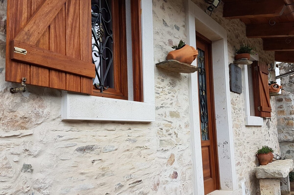Spacious, independent house with large window opening to the private terrace and garden and shared pool. It has a full kitchen and an independent bedroom with a terrace overlooking the mountains and the valley. It also has 2 single beds in the living areas. Insulated with cork and wood, it has heated floors, a fireplace and forced ventilation of hot or cold air. Optional baby crib bedding and towel costs an additional €10 per night.