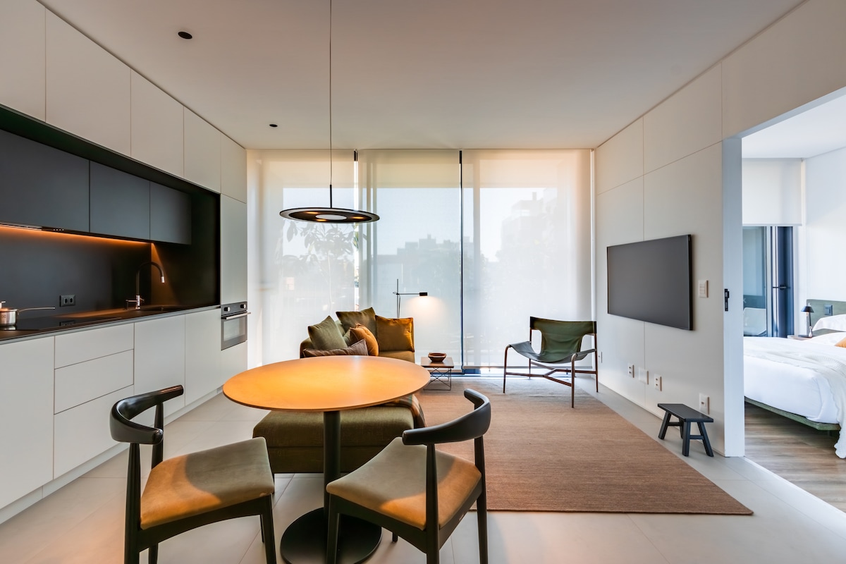 11m² loft, designed by architect Lya Marty with everything our guests need to feel comfortable. Studio with television, minibar, microwave, coffee maker and all the utensils to make your stay unique. It has crockery, bed linen, towels and pillows. The building has its own coworking space to work in, as well as a shared kitchen and barbecue area. Come be our guest