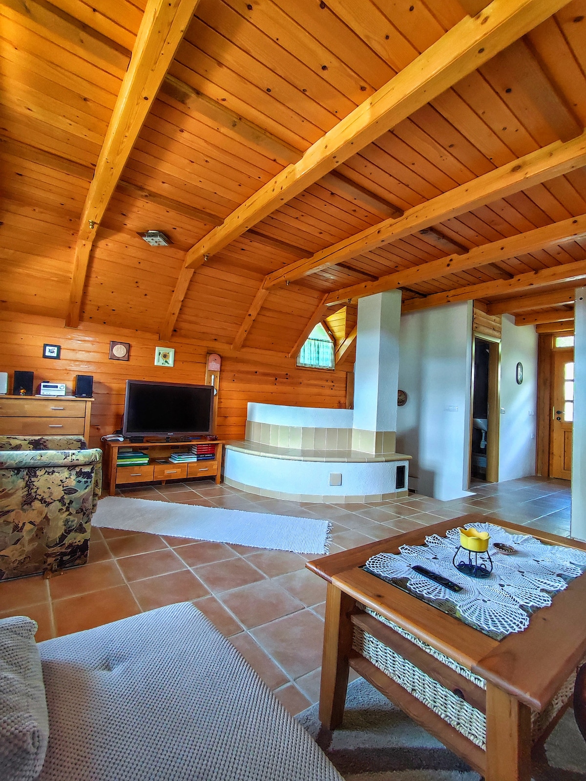 Our wooden cottage is located in the village Mahićno near the town of Karlovac. The place is very quiet and peaceful. The cottage is by the woods where you can take a walk and see a lot of harmless animals. In just a few minutes’ walk through the woods and the meadow you can reach the river Kupa. You can also reach the river Dobra in ca. 20 min by foot and see where Dobra joins the Kupa. Both rivers are very clean and are great refreshment in hot summer days.
