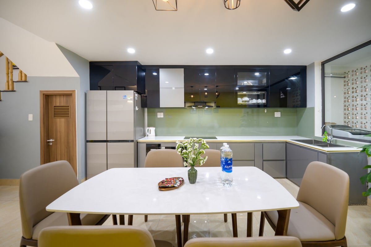 Chào mừng bạn đến với căn nhà 4 phòng ngủ ngay trung tâm Đà Nẵng, là nơi sự thoải mái, riêng tư. Phong cách hòa quyện, không gian được thiết kế tối giản, tinh tế với đồ nội thất .Tất cả chăn ra, gối, vật dụng được trang bị theo tiêu chuẩn khách sạn, Wifi, máy giặt, sấy, điều hòa nhiệt độ được trang bị đầy đủ. Cây xanh tươi mát trong lành và ngắm nhìn khung cảnh xung quanh là khu phố yên tỉnh . Vị trí ngay khu phố Hàn Quốc, có nhiều nhà hàng, Spa, bar,quán cà phê và khu mua sắm sầm uất ở Đà Nẵng.